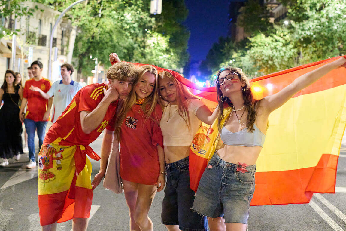 為替國家隊加油,首都馬德里在哥倫布廣場( Plaza de Col ón)封街設立大螢幕。球賽於午夜時分結束後,穿著球衣、披著國旗的球迷們還不捨離去,繼續在街頭歡呼、唱歌跳舞,許多年輕球迷高唱著「亞馬爾,我愛你」、高喊著「古古雷亞」的名字,路過的車輛也揮舞國旗、高鳴喇叭回應。