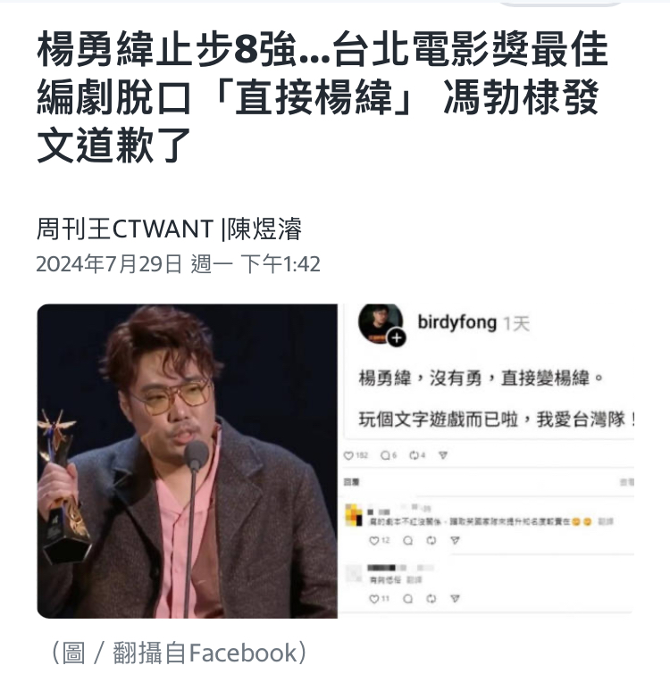 記住這個中華台北編劇的名字了,馮勃棣。