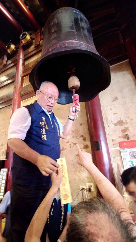 新港奉天宮在農曆 6 月最後一天「封鐘鼓」,由董事長何達煌拿書寫著天上聖母敕令的封條封住鐘鼓。