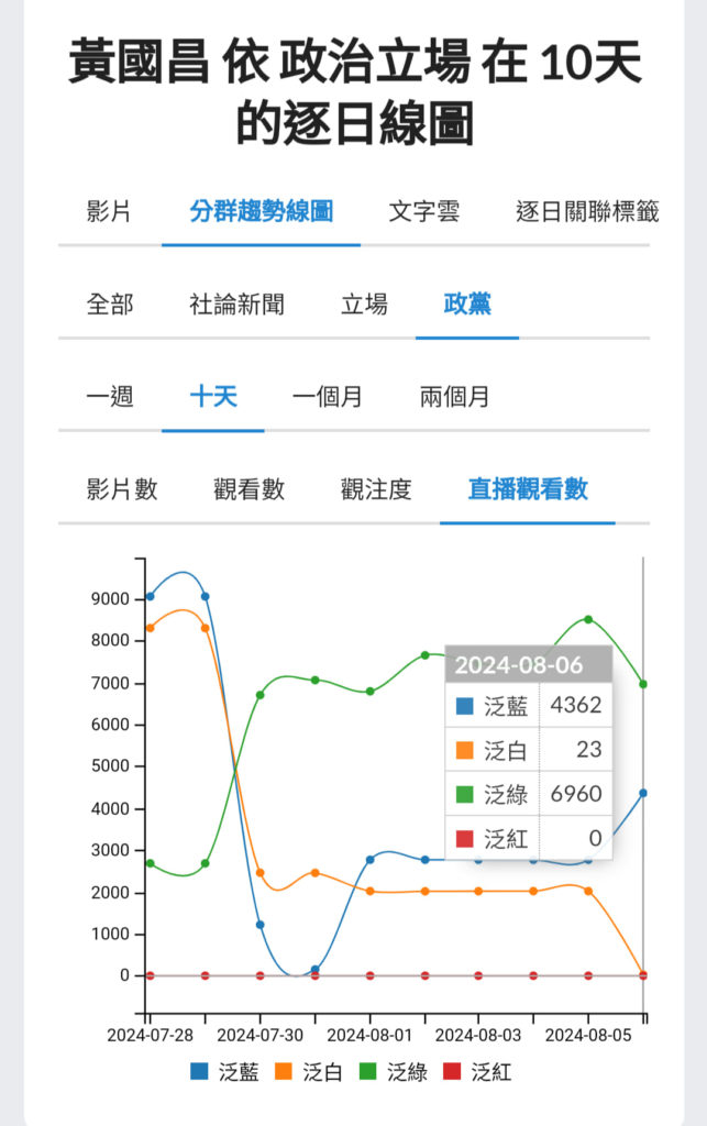 然而,對照黃國昌的直播聲量,昨日黃國昌在小草圈中的直播觀看數,赫然大跌到只剩 23 人次。