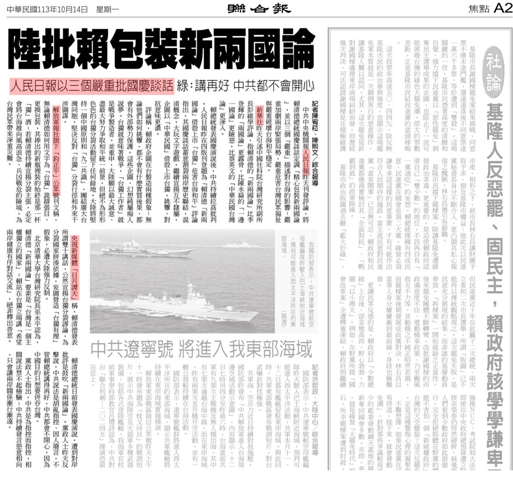 分享 聯合報不演了 聯合報以前被戲稱人民日報台灣版。結果今日聯合報就不演了,A2版頭直接引述人民日報社論罵賴清德,接著引述新華社,然後是解放軍報旗下的「鈞正平」,以及央視外圍「日月談天」。 倒底是要多舔,才會連引中國4紅媒?最好笑的是,掛名的作者之一,被說舔中親紅,還會氣噗噗呢! 圖片來源:曾韋禎臉書 原文出自曾韋禎臉書,芋傳媒經授權轉載。 人民日報央視新華社聯合報賴清德 分享 FacebookGoogle+電子信箱LINELinkedinTelegram