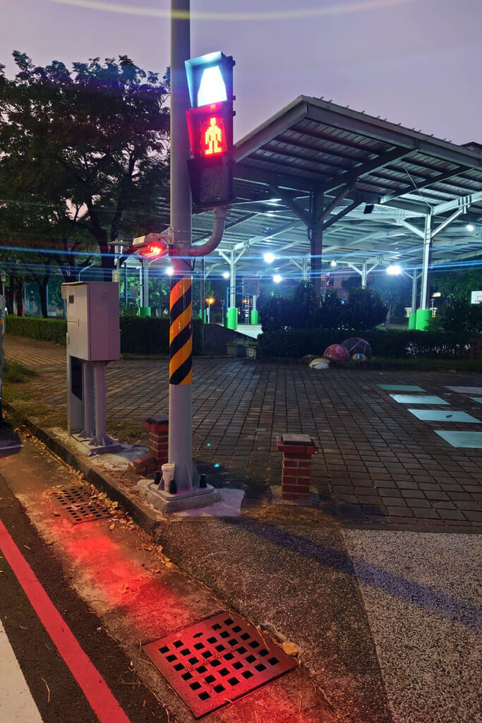 台南市政府為提高路口行人穿越線安全性,試辦於行人專用號誌增加投影燈方式,增加地面紅色與綠色光條,提示低頭族及未注意號誌者注意燈號,並加強夜間警示效果。