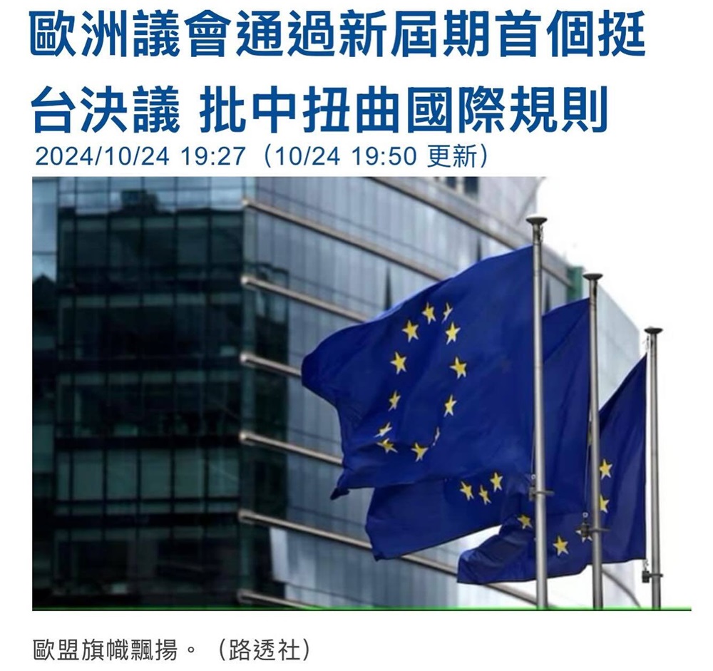 所幸,歐洲議會在十月二十四日以壓倒性的432票贊成、60票反對、71票棄權的壓倒性的票數通過挺台決議,反對中國錯誤解讀聯合國大會第2758號決議內容,以及譴責中國無端對台灣的軍事演習挑釁,重申堅決反對單方面改變台海現狀的行為(註3)。