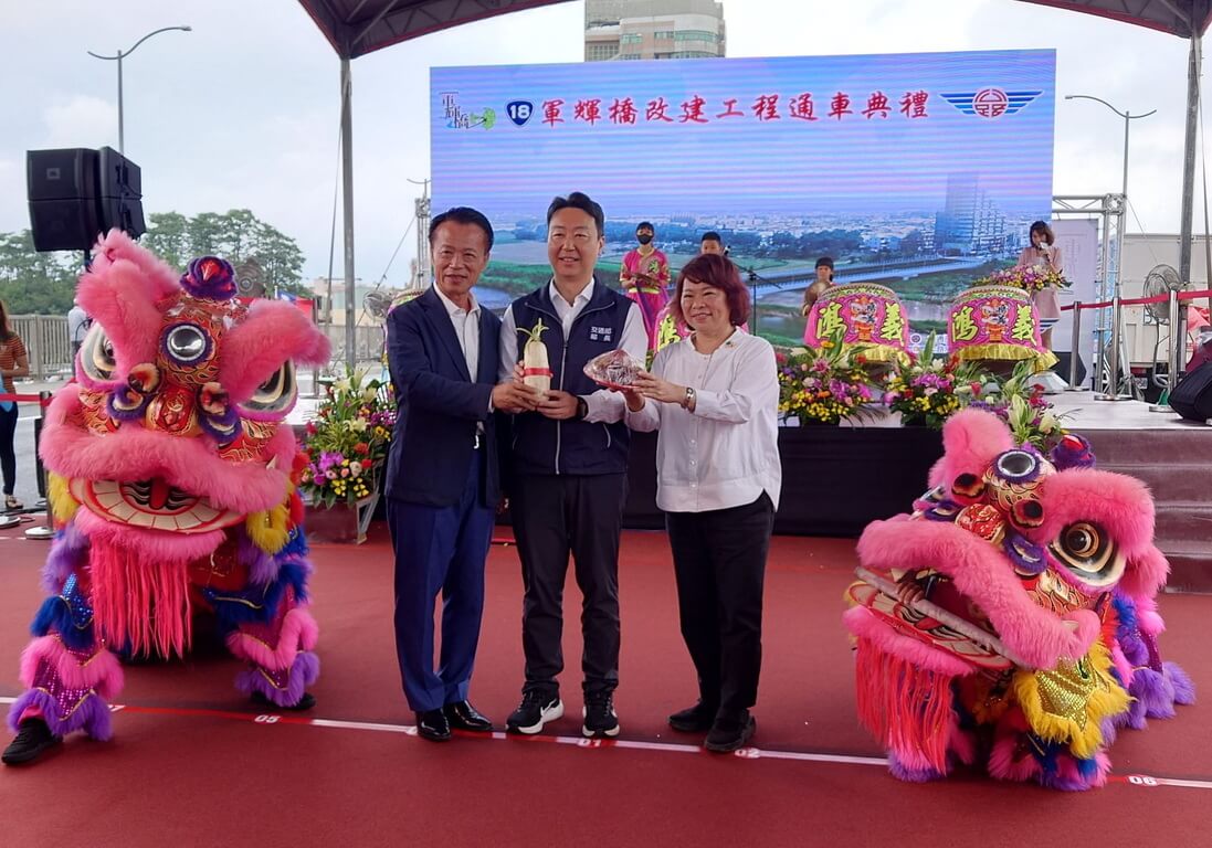 交通部公路局雲嘉南區養護工程分局今天舉辦台 18 線軍輝橋改建工程完工通車典禮,由交通部長陳世凱主持,總統府資政張博雅、嘉義市長黃敏惠、嘉義縣長翁章梁、民進黨籍立委王美惠、陳冠廷、國民黨籍立委王育敏、在地民意代表及民眾數百人與會。