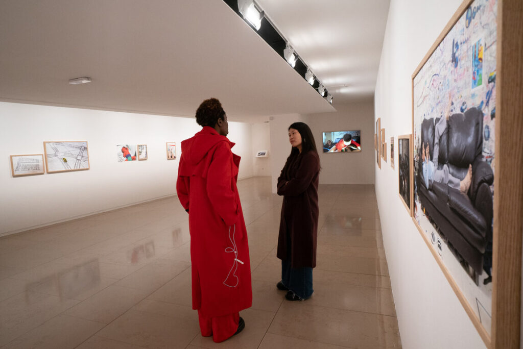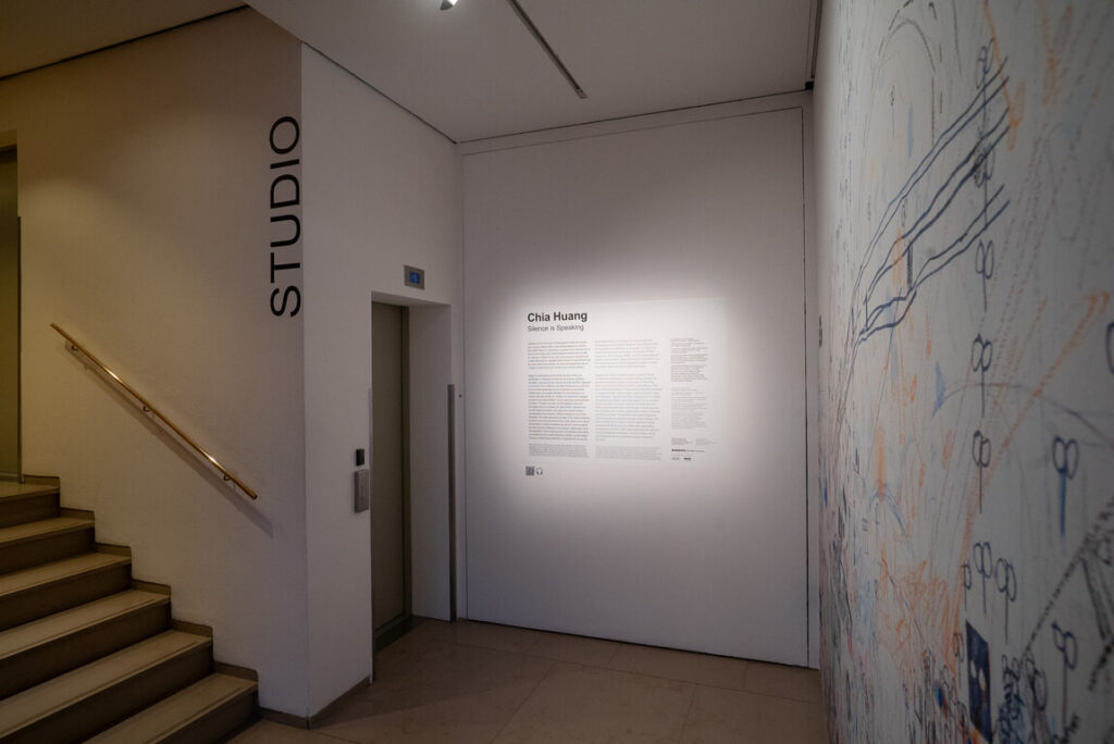 「 Silence is Speaking 」的展覽入口設置一面塗鴉牆,復刻了阿策與阿湛在台東住家牆上留下的日常痕跡,並以等比例大小輸出至巴黎展場。走進展區,一幅幅的攝影、繪畫、文件鬆散展開;有時創作者是黃迦、有時是阿策和阿湛、有時是他們三人,相互交錯,將 6 個月的朝夕相處凝縮在不到 30 件的作品中,所呈現的畫面沒有衝突、沒有屎垢,只有尚未被定義的行動瞬間。