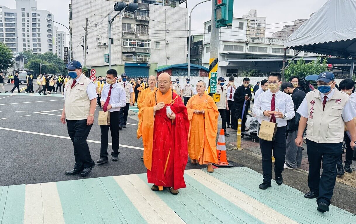 在心保和尚及近 20 名法師帶領下,蘇巧慧等人一起前往事故現場到復興路余姓男子開車撞上復興路上安全島等地進行灑淨,誦經祈福,祈願亡者得度、生者安康。
