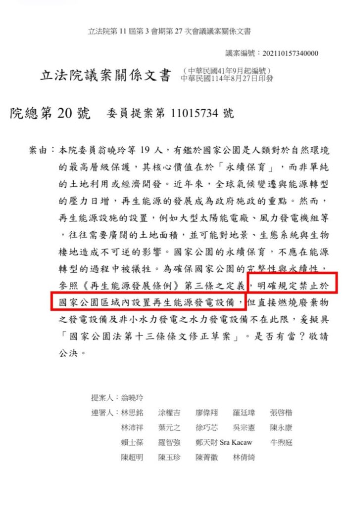 分享 翁曉玲提案:國家公園內不得設置太陽能板 目前玉山觀測站以及許多山屋都是用太陽能板在發電。 難不成改成柴油發電機比較環保是嗎? 還有許多追蹤野生動物的攝影機也是太陽能驅動的,是反光電反倒反智了嗎? 內文「直接燃燒廢棄物的發電設備不在此限」又是何意?難不成我可以在國家公園燒垃圾,但是不能架太陽能板??到底是在公蝦小? 圖片來源:取自 農藝女孩看世界 臉書 原文出自農藝女孩看世界臉書,芋傳媒經授權轉載。 光電國家公園太陽能板翁曉玲野生動物 分享 FacebookGoogle+電子信箱LINELinkedinTelegram