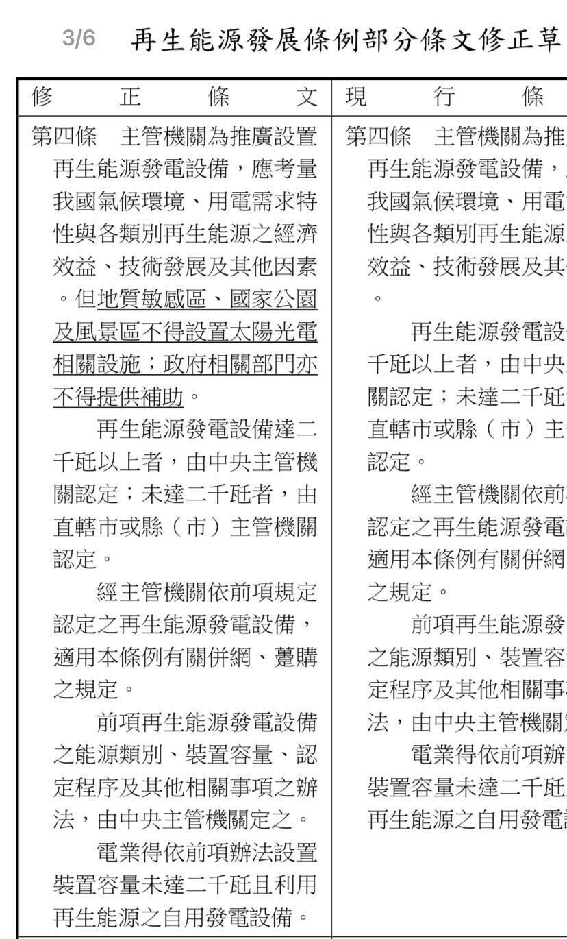 文字就是「無差別禁止太陽能發電」,之後被罵了,就說我本意並非如此,這樣就可以了嗎?與其這樣事後說明,還不如一開始就把法條內容寫好。