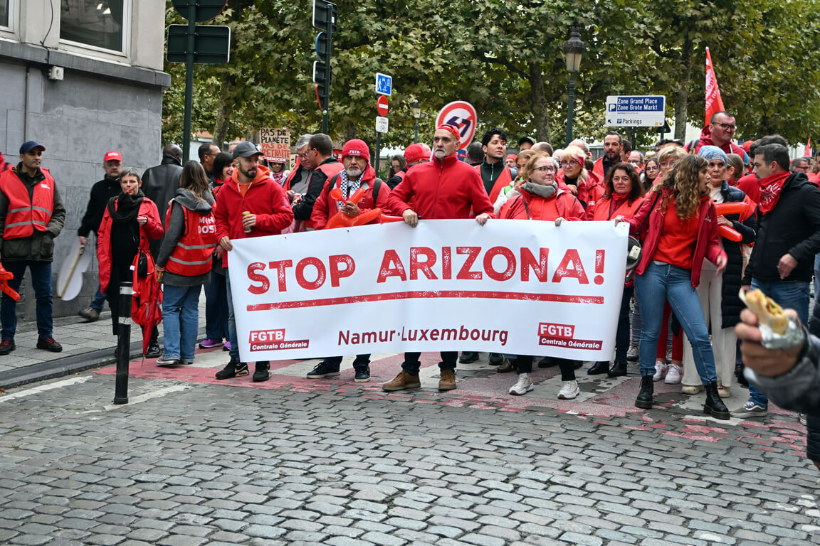 14 日上午,來自比利時各地的罷工參與者陸續抵達布魯塞爾,並在布魯塞爾北站聚集。參與罷工的民眾除了手持標語、大喊口號外,也有人鳴汽笛、施放各色煙霧彈。