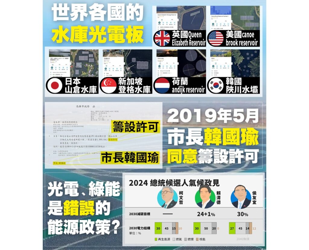 務實就是去找資料,發現柯文哲當台北市長時也大力推動太陽能板;發現高雄水庫的太陽能板是韓國瑜許可設立的。