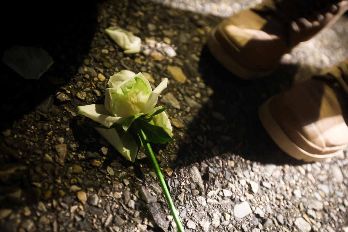 「生命無價,病假無罪」,空服員工會今天也準備 3000 支白玫瑰要獻給跑者,並在等跑者都出發後,工會成員一度闖入賽道遭到警方制止,但仍登上舞台貼上相關訴求。
