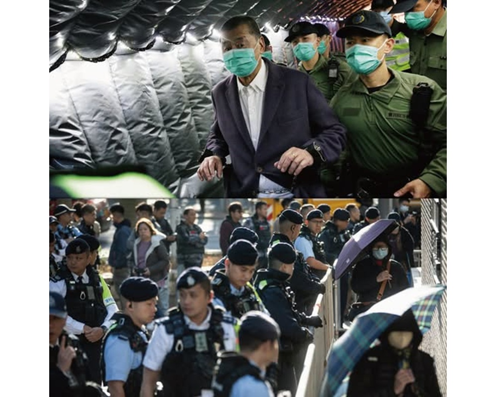 ⑩ 10 點 44 分,黎智英揮手向家人道別。囚車在半小時後開出法院,現場員警全副武裝戒備。