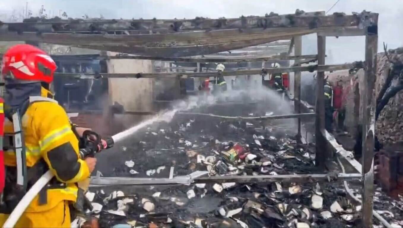澎湖消防局是在中午 12 時 56 分接獲民眾通報,湖西鄉菓葉村一鐵皮屋發生火警,現場冒出大量濃煙,隨即派遣湖西分隊出動 2 車 3 人前往搶救,由消防局第二大隊副大隊長王思源負責現場指揮。